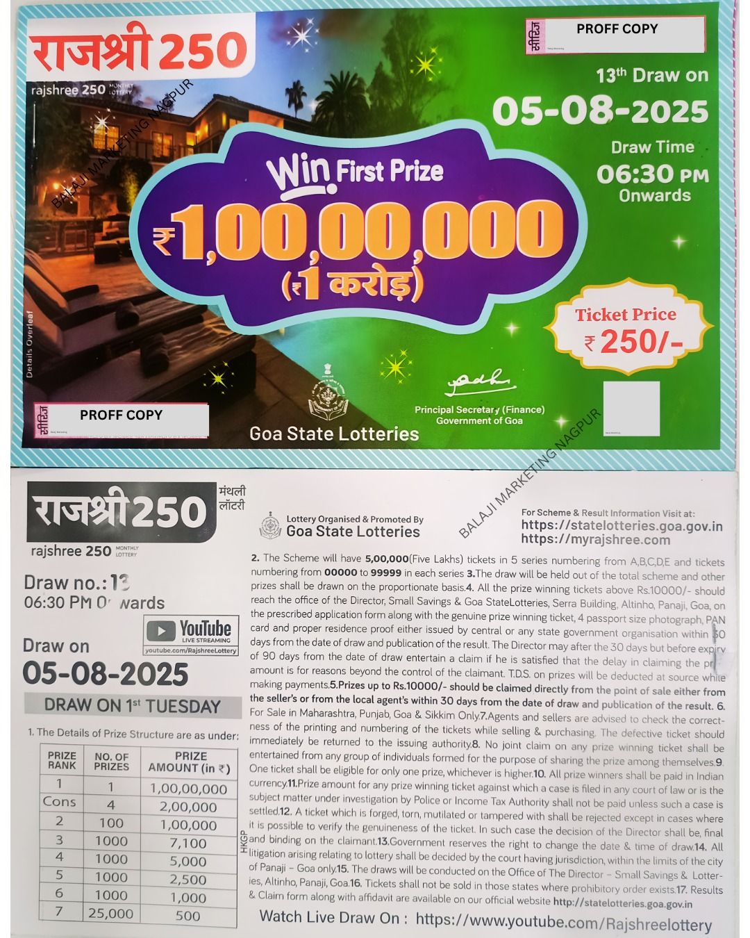 Rajshree 250 Monthly Lottery Draw 06:30Pm 07 October 2025 (Single)